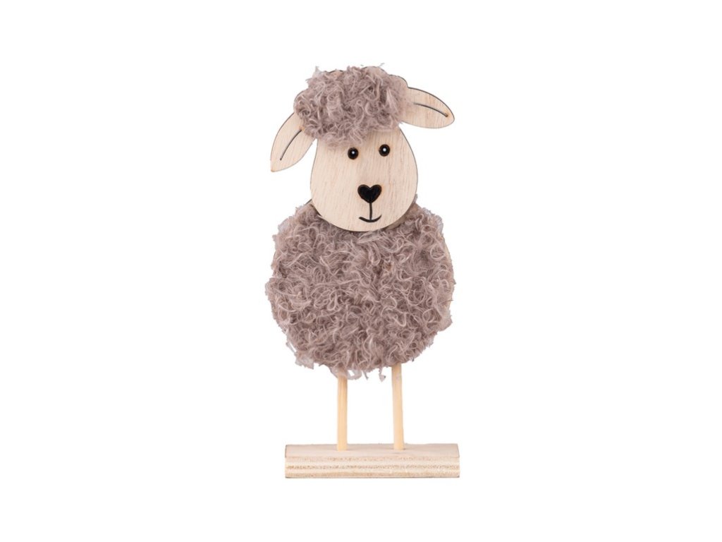 Dekorace dřevo, textil 75x165mm ovečka na postavení, přírodní, hnědá