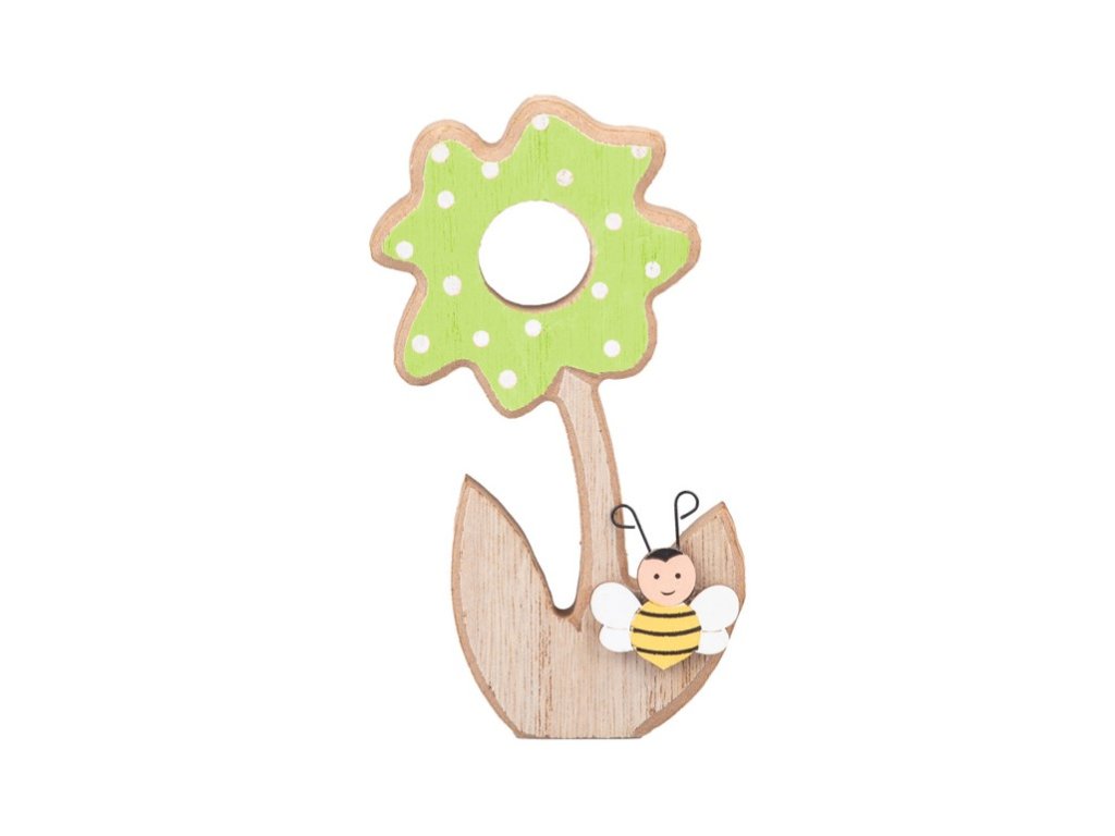 Dekorace dřevo 60x120mm kytka, přírodní, zelená