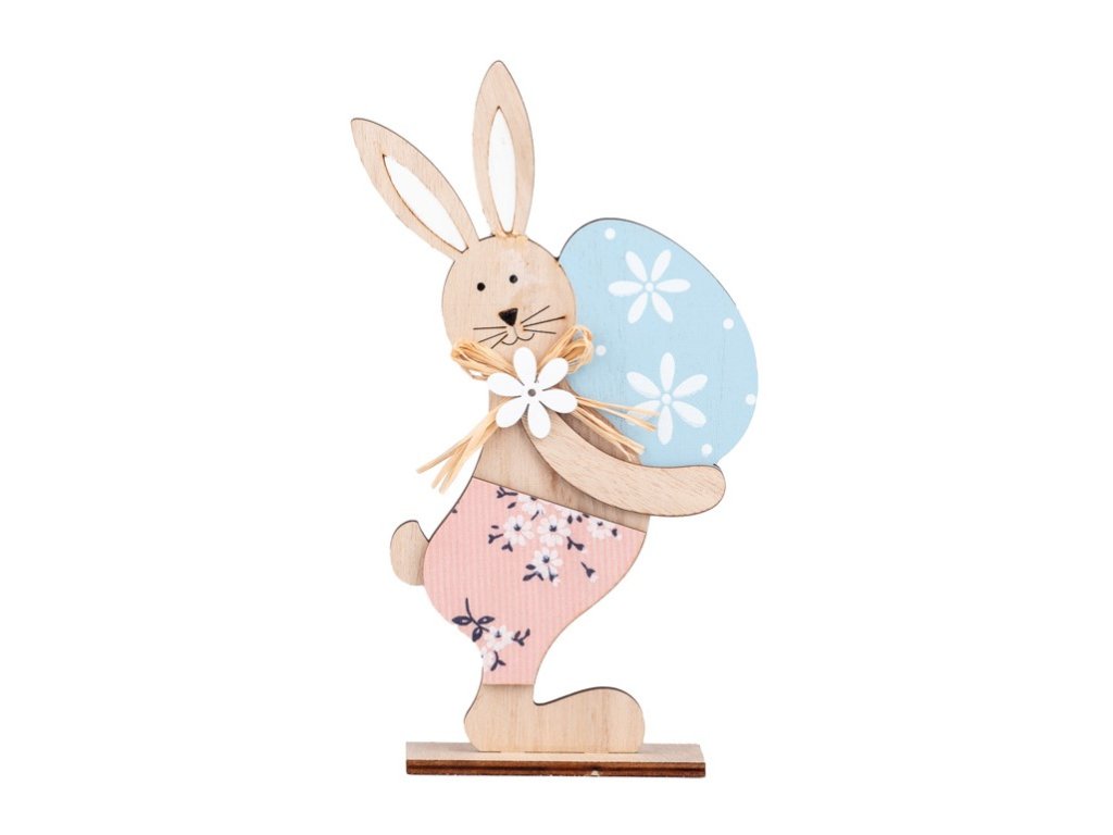 Dekorace dřevo 130x225mm zajíc na postavení, přírodní, barevná